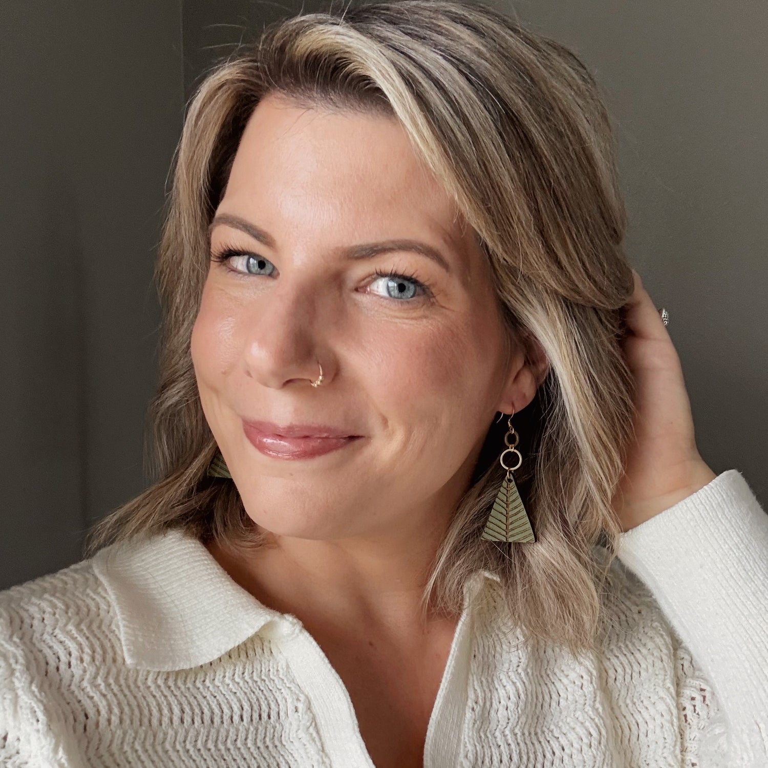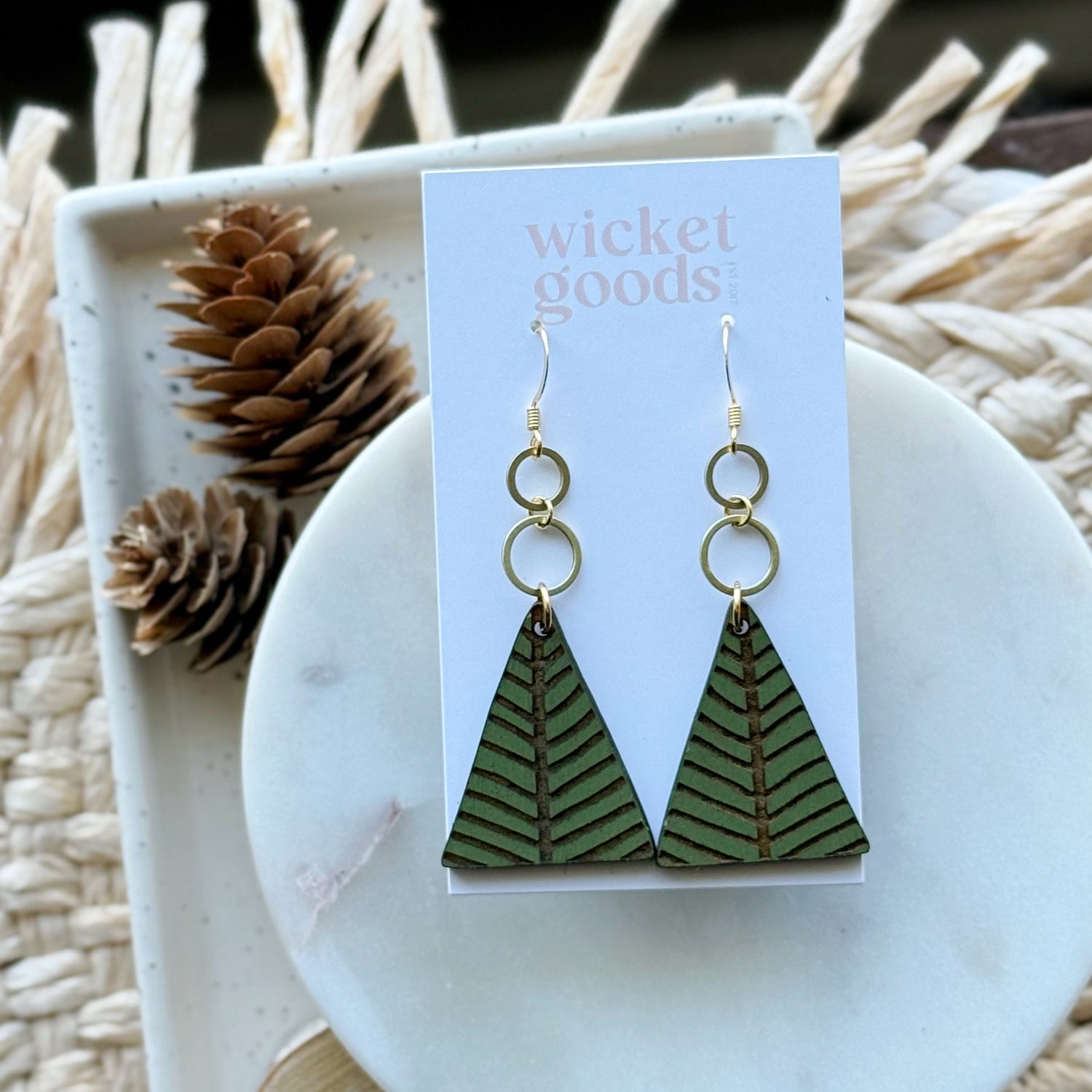 Made from hand painted basswood, raw brass, and hypoallergenic gold-plated brass ear wires. Designed, cut, and assembled in our home studio in Selah, Washington.