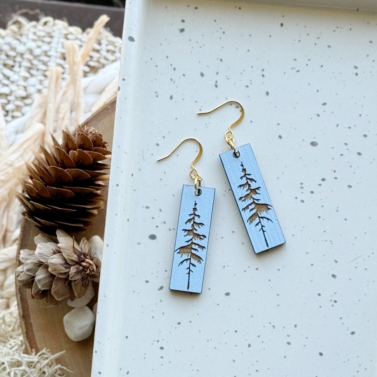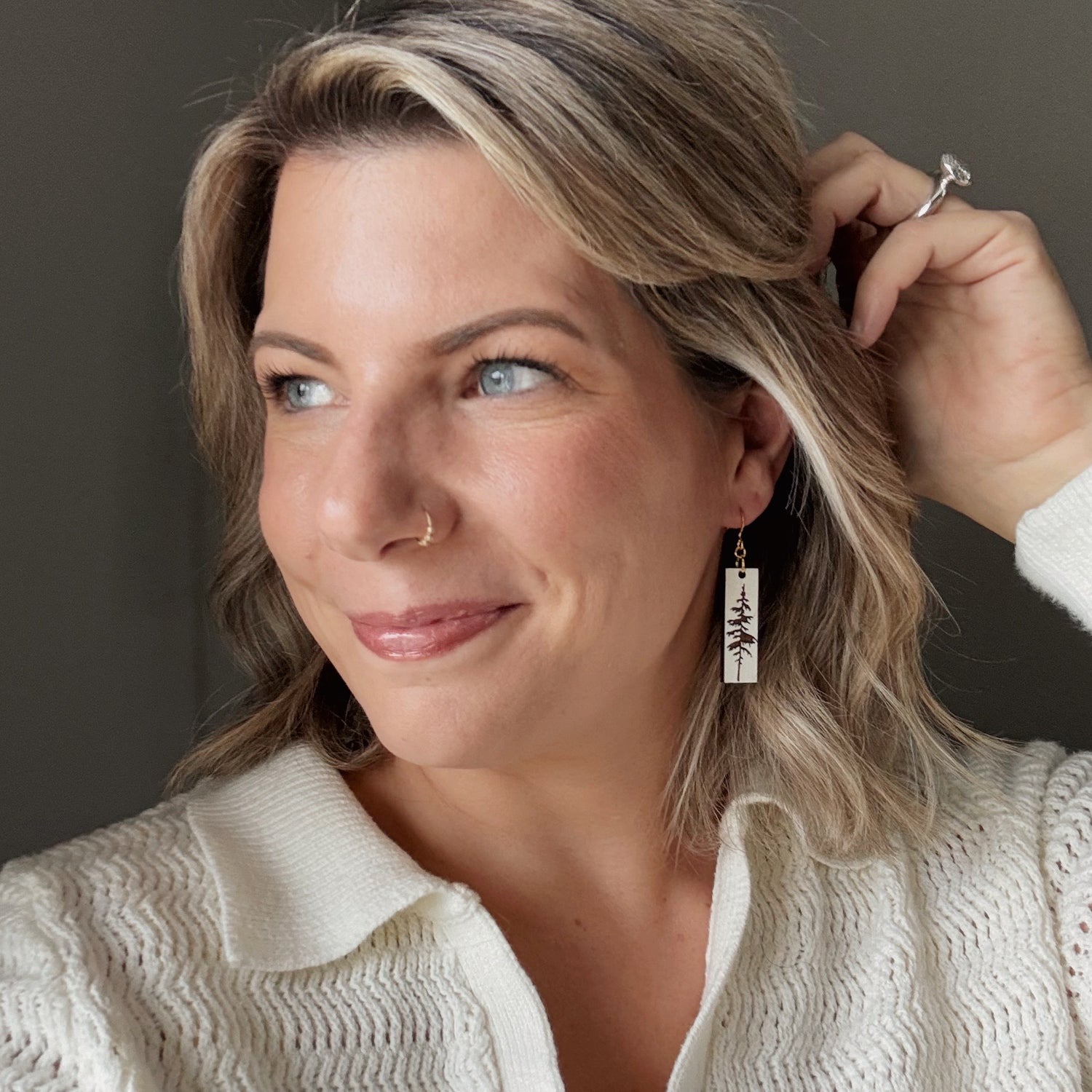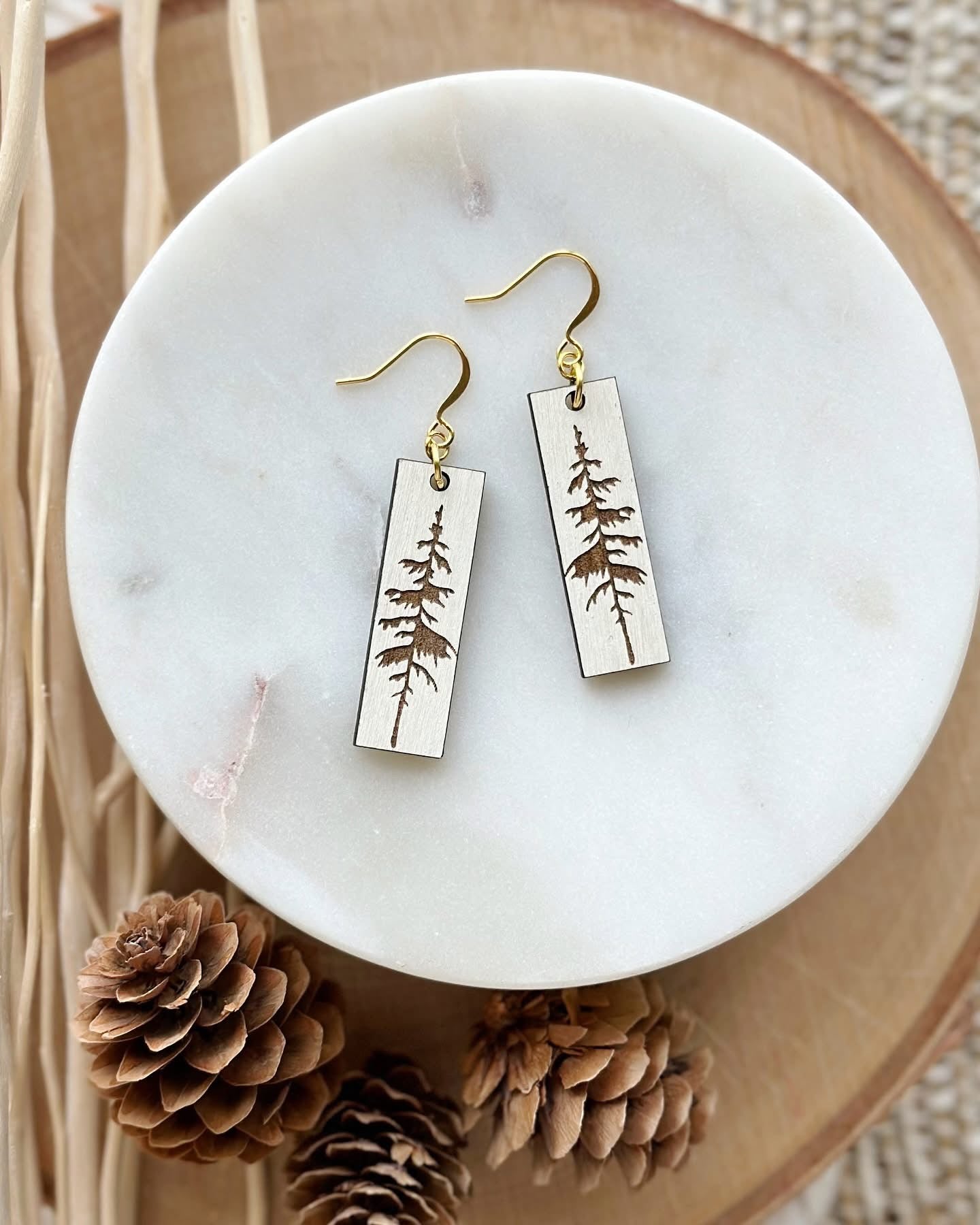 Made from hand painted basswood and hypoallergenic gold-plated brass ear wires. Designed, cut, and assembled in our home studio in Selah, Washington.