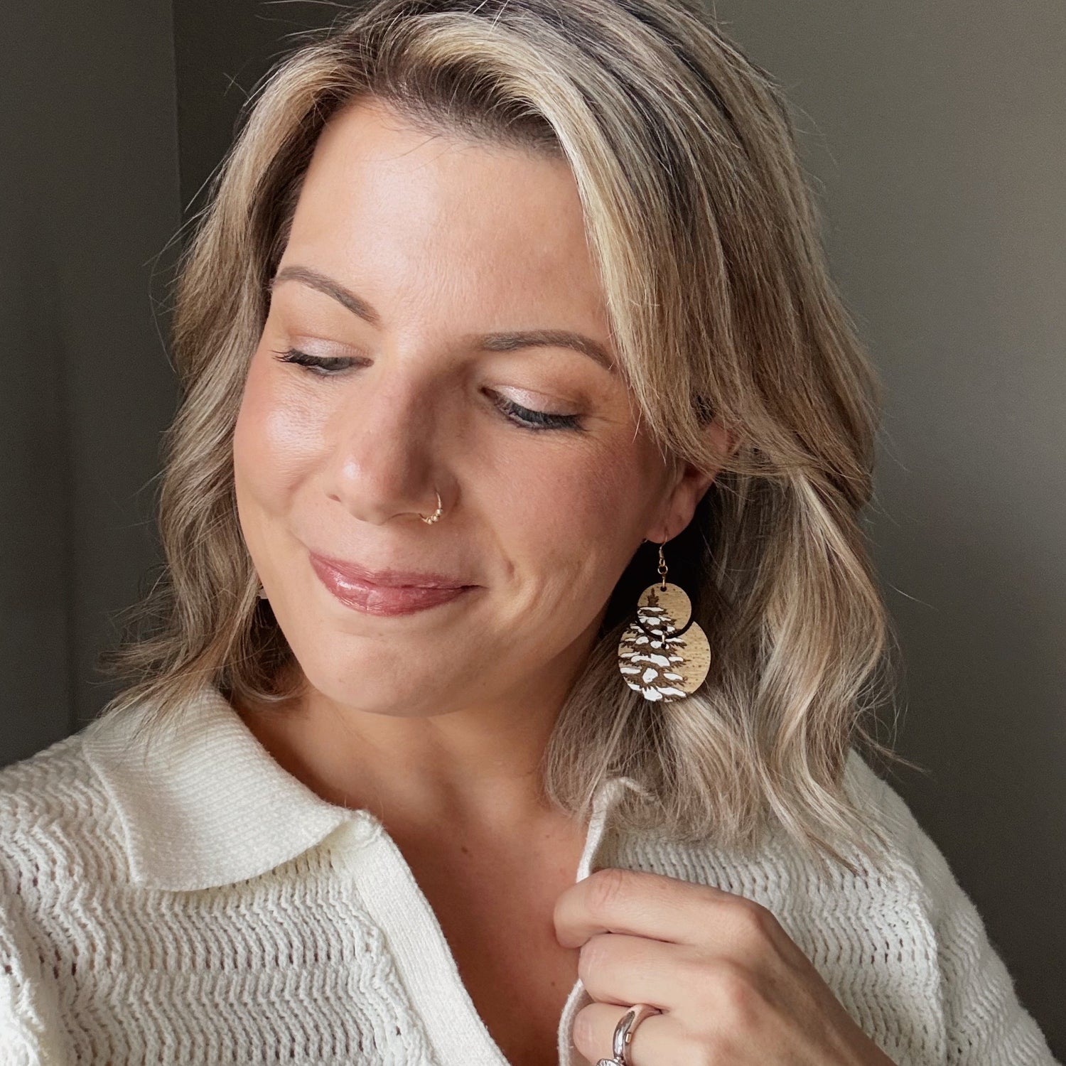 Made from hand painted basswood and hypoallergenic gold-plated brass ear wires. Designed, cut, and assembled in our home studio in Selah, Washington.
