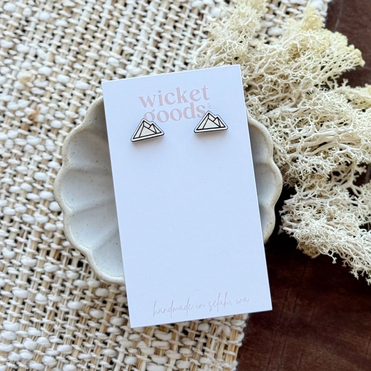 Made from hand painted Baltic birch wood and hypoallergenic stainless steel studs. Designed, engraved, and assembled in our home studio in Selah, Washington.