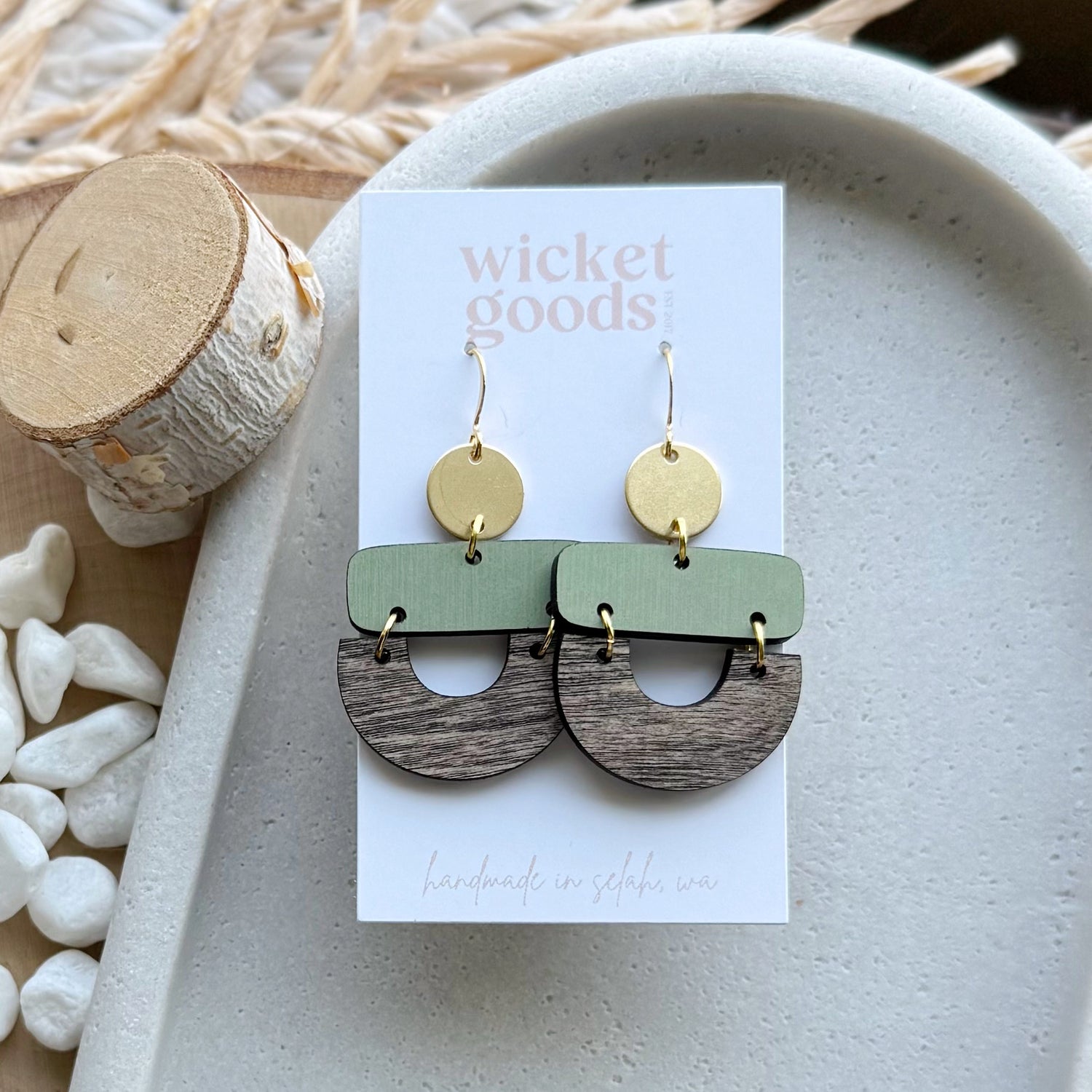 Made from hand-painted baltic birch and hypoallergenic gold-plated brass ear wires. Designed, cut, and assembled in our home studio in Selah, WA.